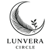 Logo featuring a crescent moon with a feather and leaves inside, with the text "LUNVERA CIRCLE" below.